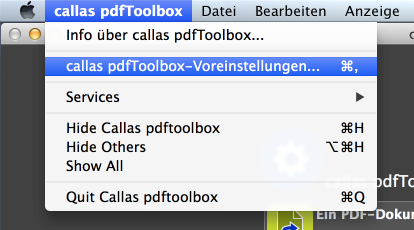 Über die Menüleiste können Sie die Voreinstellungen aufrufen.
