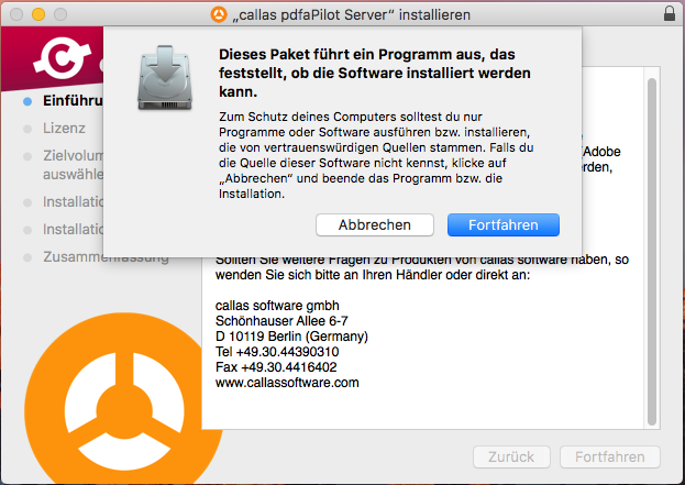 Installation von pdfaPilot Desktop oder Server unter Mac