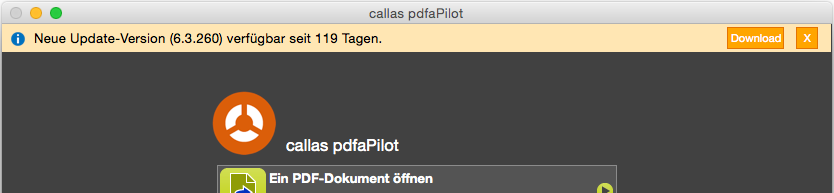 Hinweis: In der Plug-In-Version von pdfapilot werden die Hinweise auf Updates nicht dargestellt.